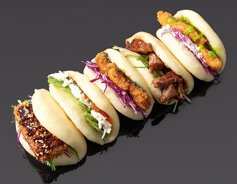 Бао с курицей, Бао с уткой по-Пекински, Бао с креветкой, Бао с угрем, Бао с камчатским крабом