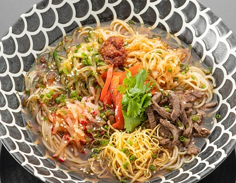 Закажите суп Куксу на говяжьем бульоне на сайте Naomi Sushi и насладитесь гармонией вкуса и пользы!